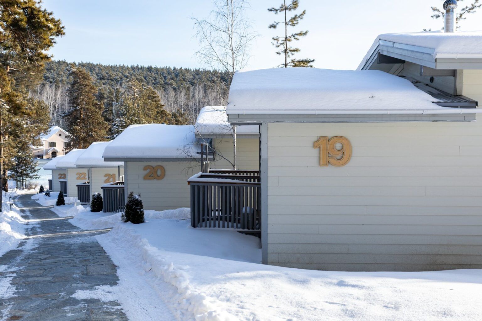 В каждом — подогреваемый инфинити-бассейн с видом на озеро и сауна.